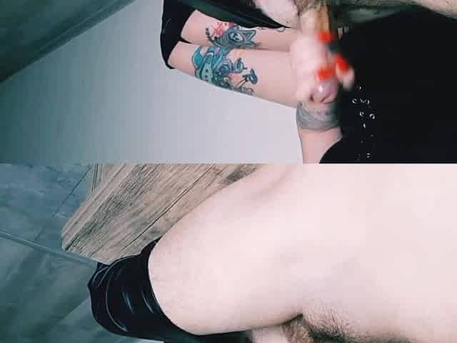 Cumshot at the hands of Dominatrix Nika. Handjob.