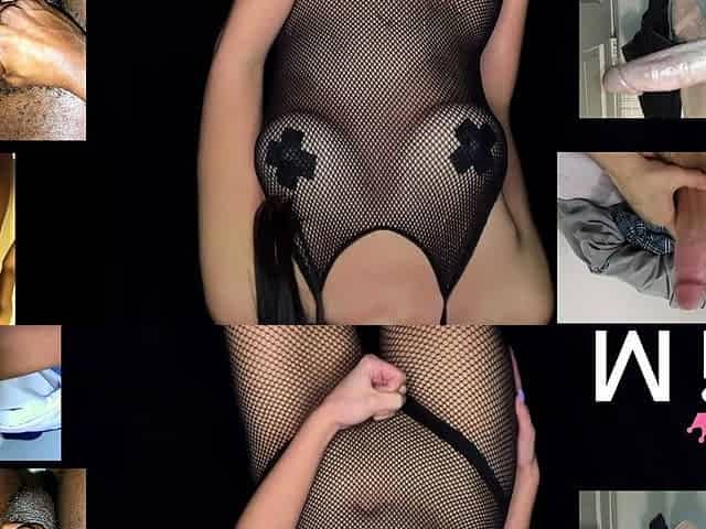 in a mini petticoat and nylons helps a stud cum, jerks off a large corpulent schlong