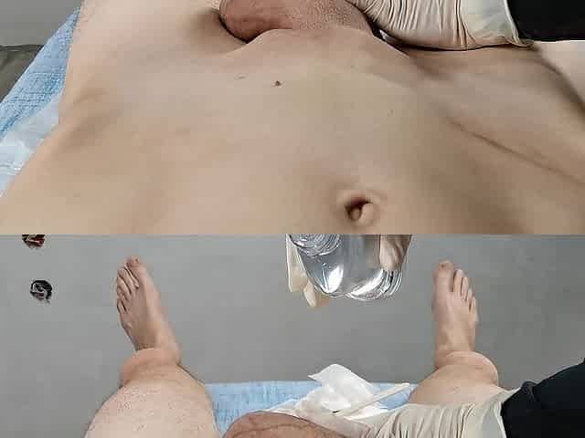 Anal Examination Wearing Surgical Gown and Latex Gloves