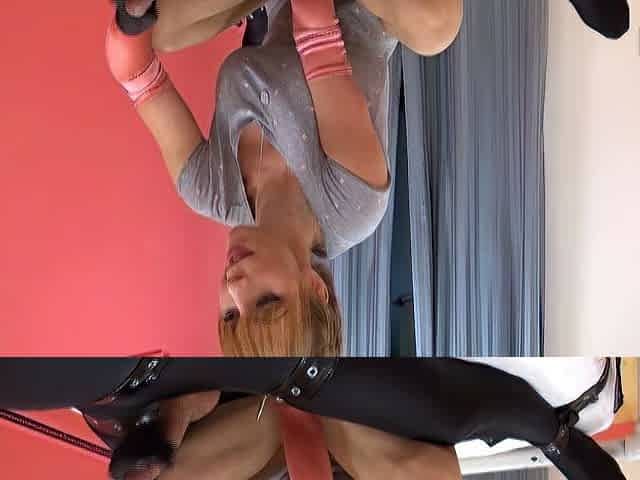 Mistress Katy in Humiliation, Handjob, Face Slapping, and Pantyhose Foot Domination