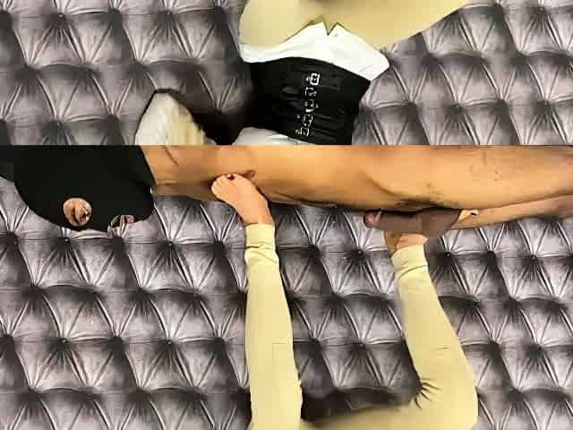 CUCKOLD SPOUSE LICKS CUM FROM FEET AND SUCKS FINGERS