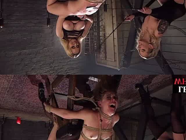 Suspension bondage lez sub pussytoyed by whipping lez domina