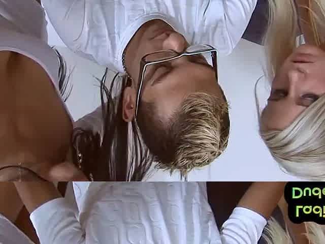 Dirty feminas fuck guy in anal hole in threesome fuck