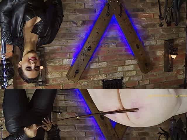 Domme Restrains Slave Balls And Canes Naked Male Slave Ass Severely