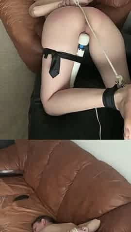 Roped brunette gets fucked by her lesbian friends