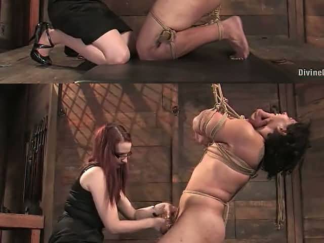 Cruel mistress punishes pussy of tied up and suspended hooker Virginia Tunnels