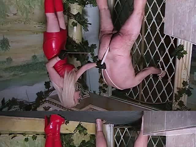 Strapon domina pegging pathetic loser till he cums