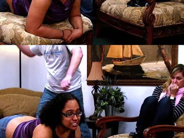 Lesbo black patient Nikki Darling spanked by blond doctor Helena Locke in her office