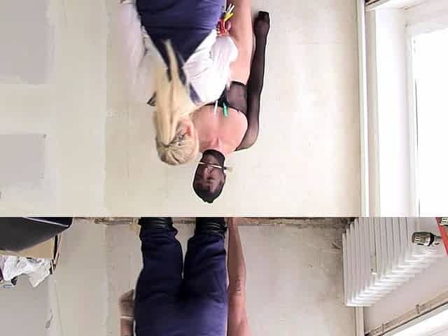 Young Mistress Ties Slave to Ceiling with Rope, Whips Him, Bites Him, Drips Wax on Him, and Enjoys Listening to His Screams