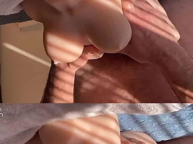 Dad Banging Toy Twat with Lube and weenie ring and cum on Belly