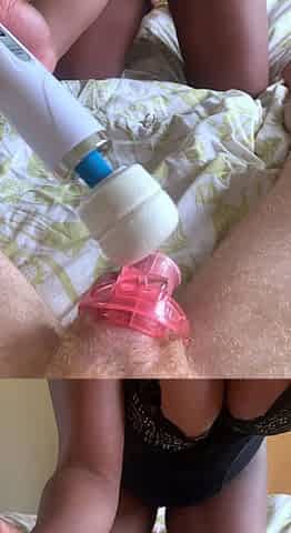 Dad Banging Toy Twat with Lube and weenie ring and cum on Belly
