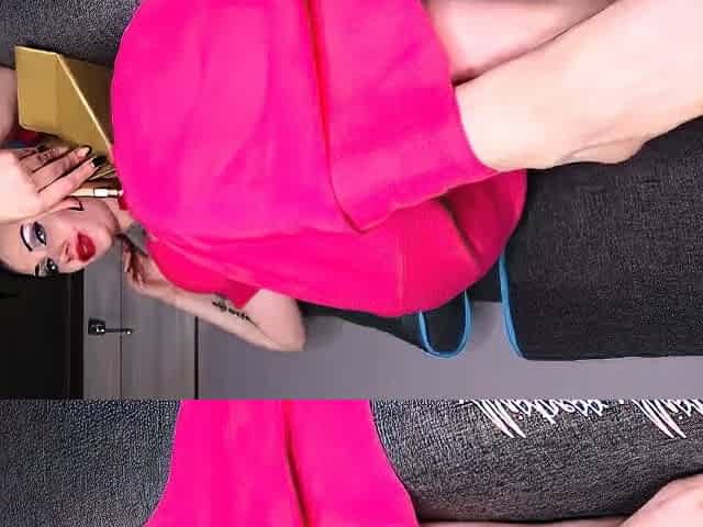 Laura XXX model 2021 footjob and tugjob on pink nylon until this chab cums
