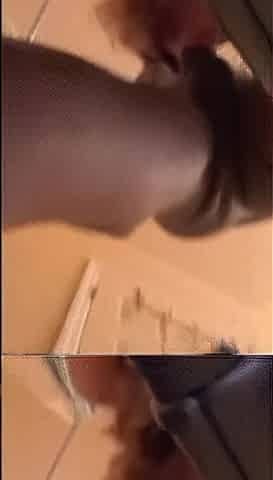In a nylon catsuit and high heels I suck a jock and screw it in a gloryhole until it cums in my throat