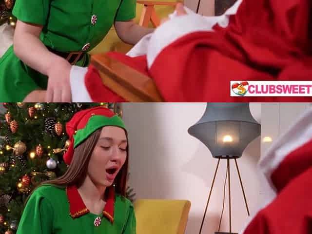 Santa helper screwing Santa's large knob below tree at ClubSweethearts