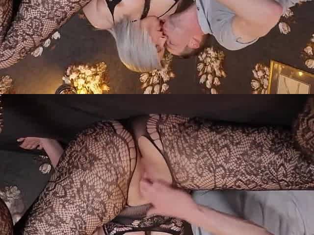Thick blonde milf brought a holiday spirit with her bodysuit to please him in bed POV