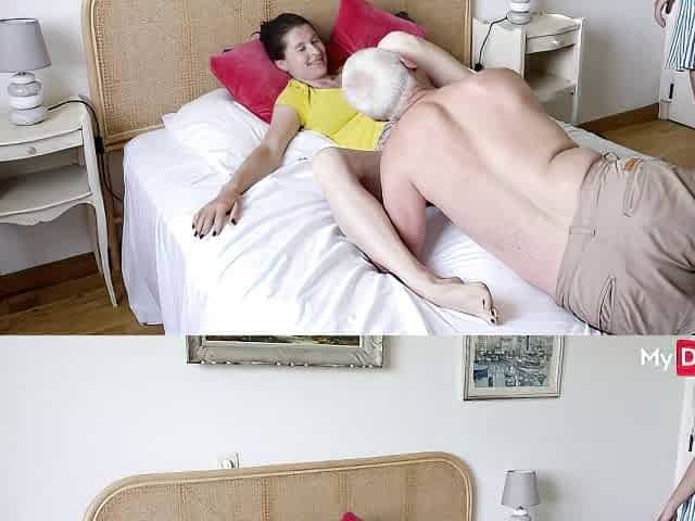Stepmom seduces her stepdaughter for an FFM threesome with her new friend