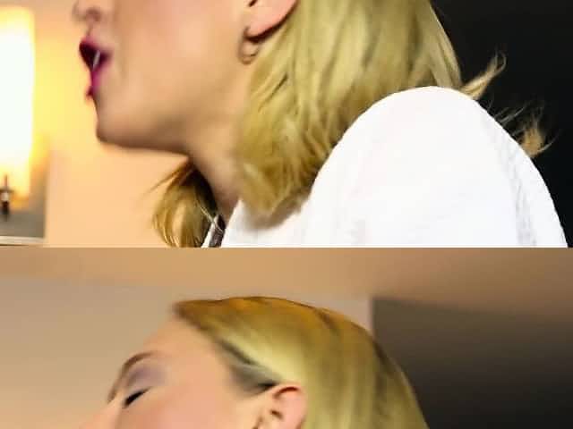Passionate babe Alexa Rae gives a godlike blowjob on the knees