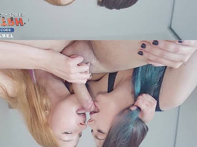 Hardcore ffm blowjob and doing handjob