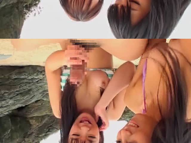 Outdoors video of two Japanese babes giving head and riding