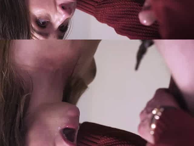 Slim teen girl get their mouths fucked in an FFM threesome POV
