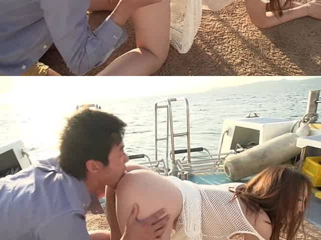 Japanese beauty enjoys a yacht ride with her toy collection