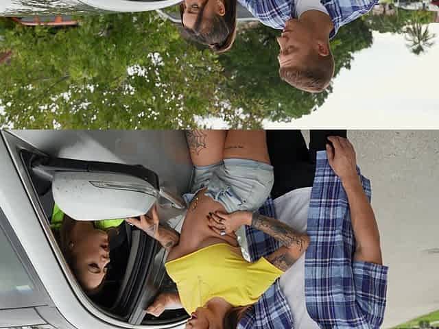 Tina Valentina and another hottie share a dick in the car