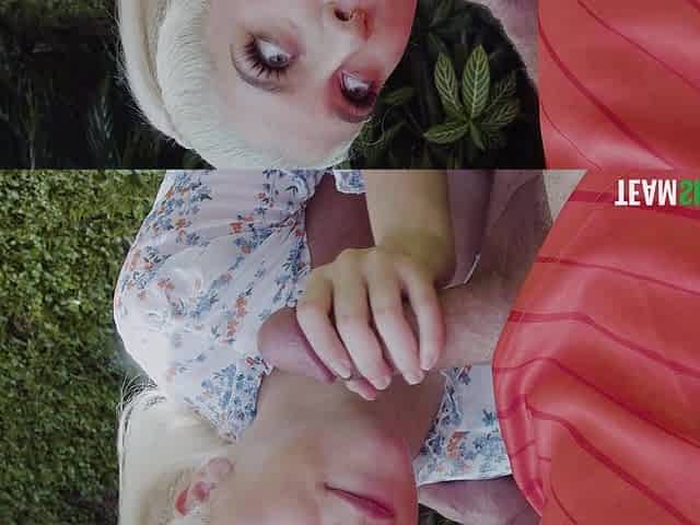 POV HJ busty babe and teen jerk and grind cock in 3some