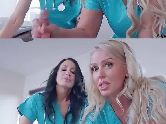 Bimbo Alison Rey sharing a tasty sausage with her slutty friend