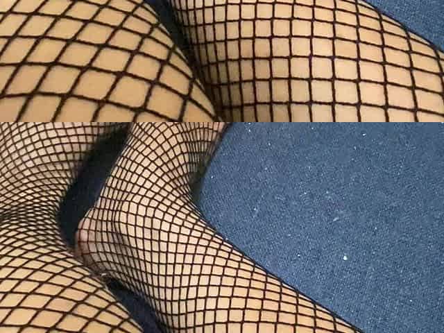 Really Nice Legs with Tiny Feet and Long Sexy Toes Wearing Black Fishnet