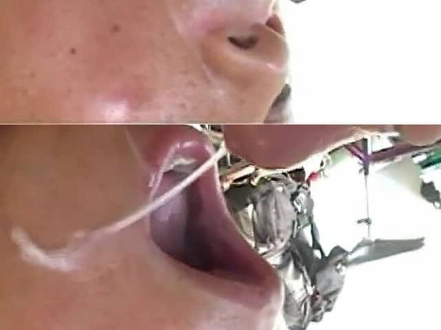 dentures out for great GUMJOB – head with cim and swallowing