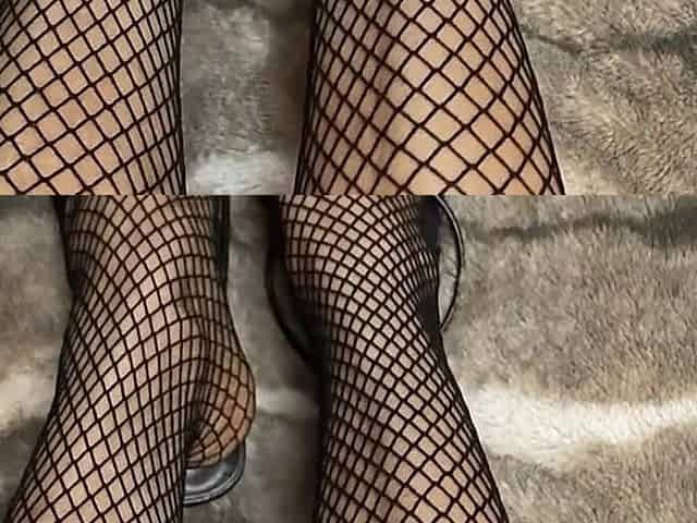 Fishnet in Open Toe Shoes with Red Nail Polish