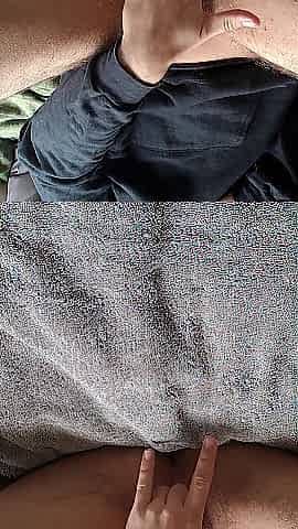 Enby FTM jerks tdick in advance of loud shaking climax with sextoy