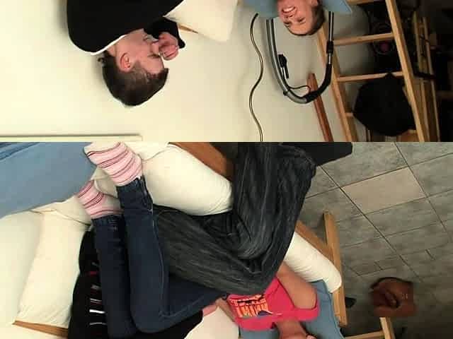 Disguised Janitor Tricks Client into Oily Lesbian Threesome