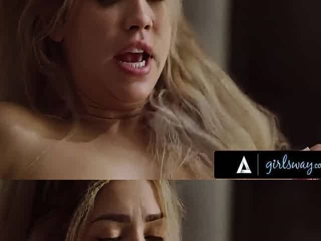 Blonde Spreads Wide for Lesbian Fingering and Deep Pounding