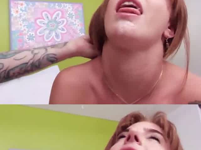 Redhead insane slut stuffed in threesome, swallows both loads - filthy XXX porn!