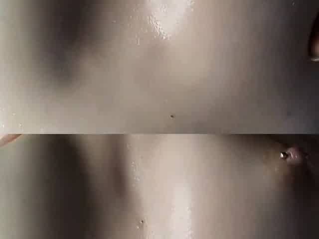 Oiled close-up play with LilCelty ends in a mind-blowing vibrator orgasm while she juggles her big boobs
