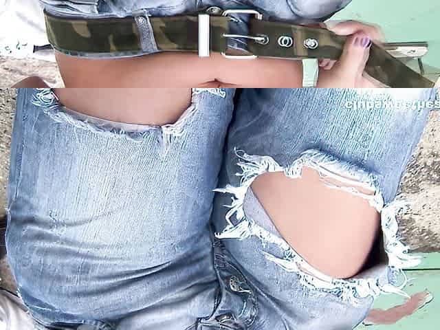 Gorgeous babe with round ass Fibi Euro touches her shaved pussy