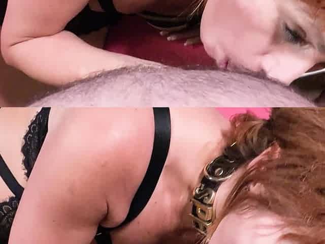Redhead girlfriend Red Louboutin enjoys while getting spit roasted
