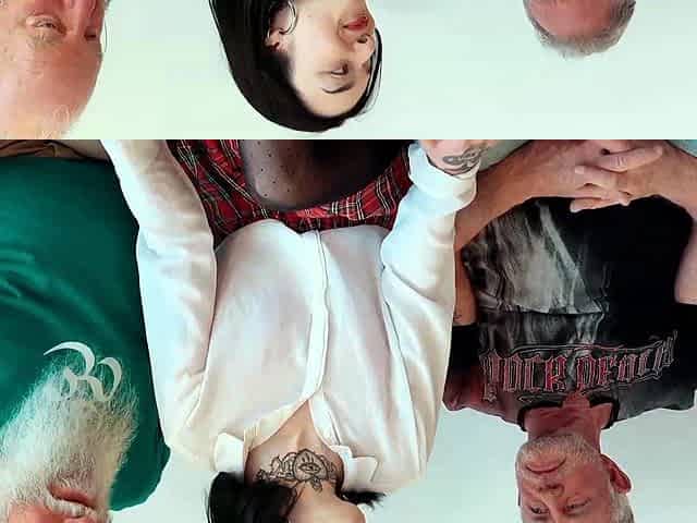 Young Snow DeVille has threesome with 2 old men and swallows