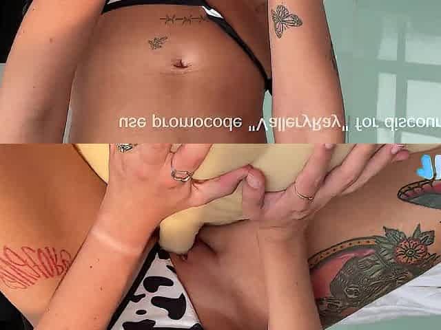 lesbians licking pussy and fingering while vaping miss pussycat with hot tattoo babe cheri