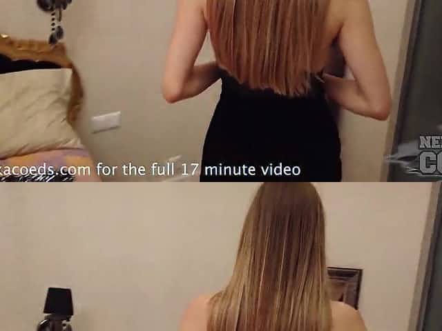 Sexy young brunette slut fucks boyfriend on camera for first time