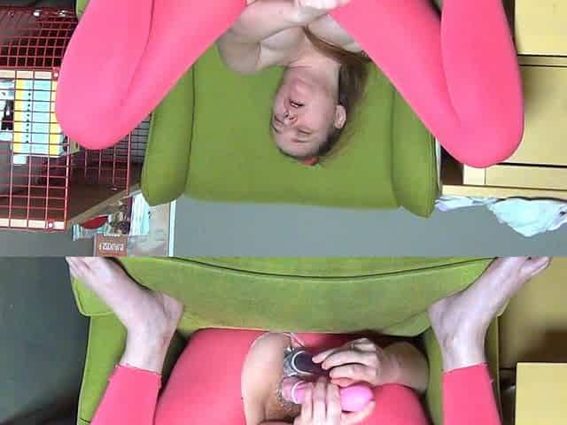 Milf in stretch pants enjoys dual pleasure with dildos and real orgasms