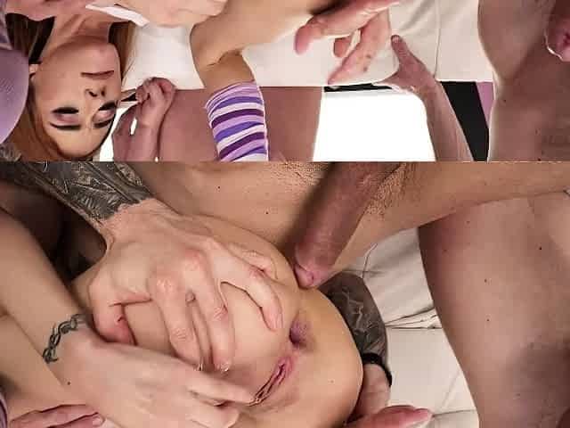 1st three on 1 ever, (MOIST Version) Dp and pissing with three giant weenies