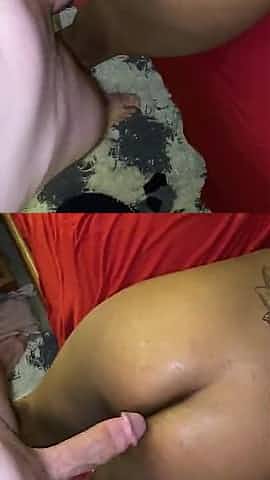 Amateur girl is rubbing her pussy while being fucked in the bumhole