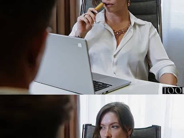 My lesbian boss finds out I'm having an affair with her secretary and fucks her in front of me.