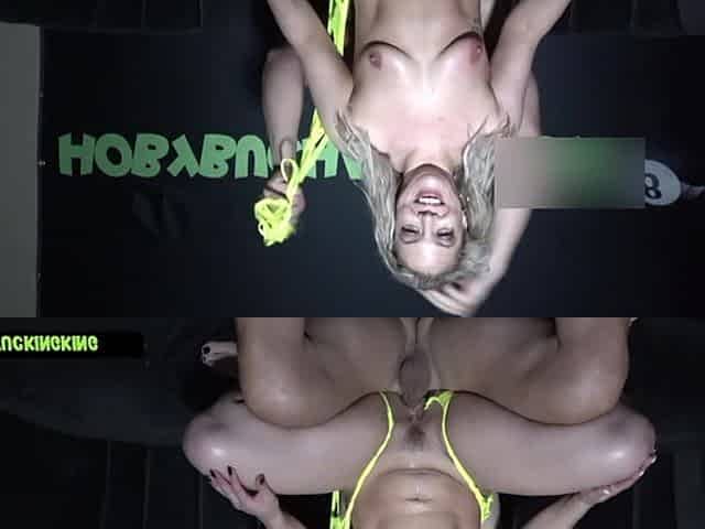 In a fishnet bodysuit, my super-hot moves make him blow twice in my mouth