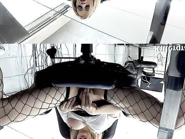 Amateur shaved blonde in fishnet stockings