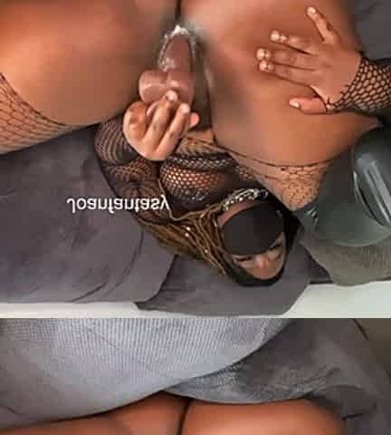 Fat black in a fishnet top gets her snatch permeated after teasing with her butt