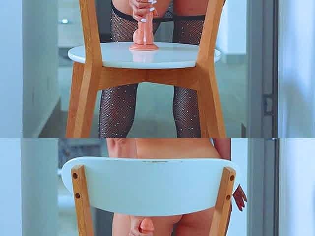 Brazilian Beauty in Fishnets Tights: Wet & Messy Dildo Riding
