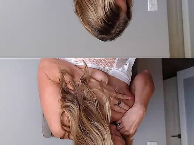 Amateur shaved blonde in fishnet stockings